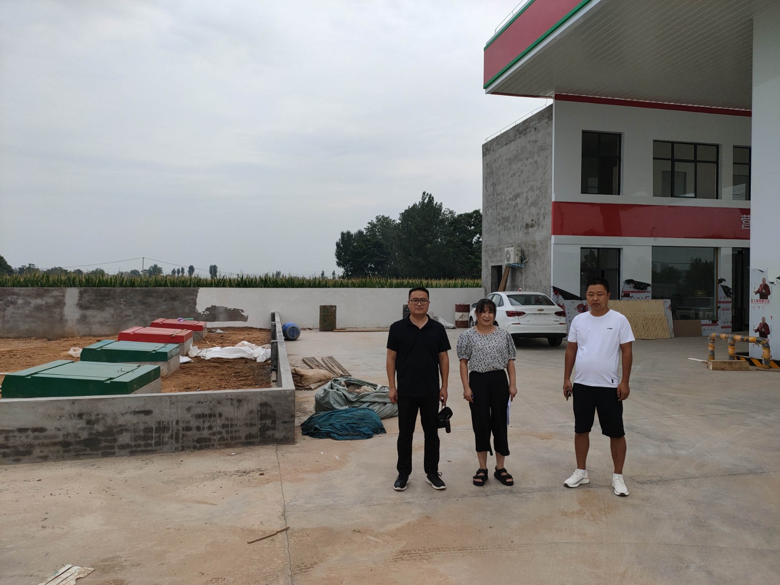 项目简介 | 孟州市正兴加油站位于孟州市河阳办事处缑村上酒路1500米处路东,占地面积1925㎡。投资人为曹圆圆,现有员工6人,其中安全生产管理人员1人,无特种作业人员。 该建设项目设有埋地双层油罐4座,其中乙醇汽油储罐2座(30m3×2),柴油储罐2座(30m3×2),加油机4台;汽油安装有加油、卸油油气回收系统等。依据GB 50156-2021《汽车加油加气加氢站技术标准》第3.0.9条,关于加油站等级划分的规定,折合计算油罐总容积90m3,该加油站属于三级加油站。 该建设项目取得有危险化学品建设项目安全审查意见书、河南省企业投资项目备案证明、营业执照、规划情况说明、土地租赁(承包)合同书、成品油零售经营批准证书和焦作市商务局文件、孟州市防雷防静电装置安全性能检测报告、应急预案备案登记表等证照文书。 该建设项目东侧、北侧均为农田;南侧为农田、架空电力线和变压器(丙类);西侧为架空电力线和上酒路。 | |||