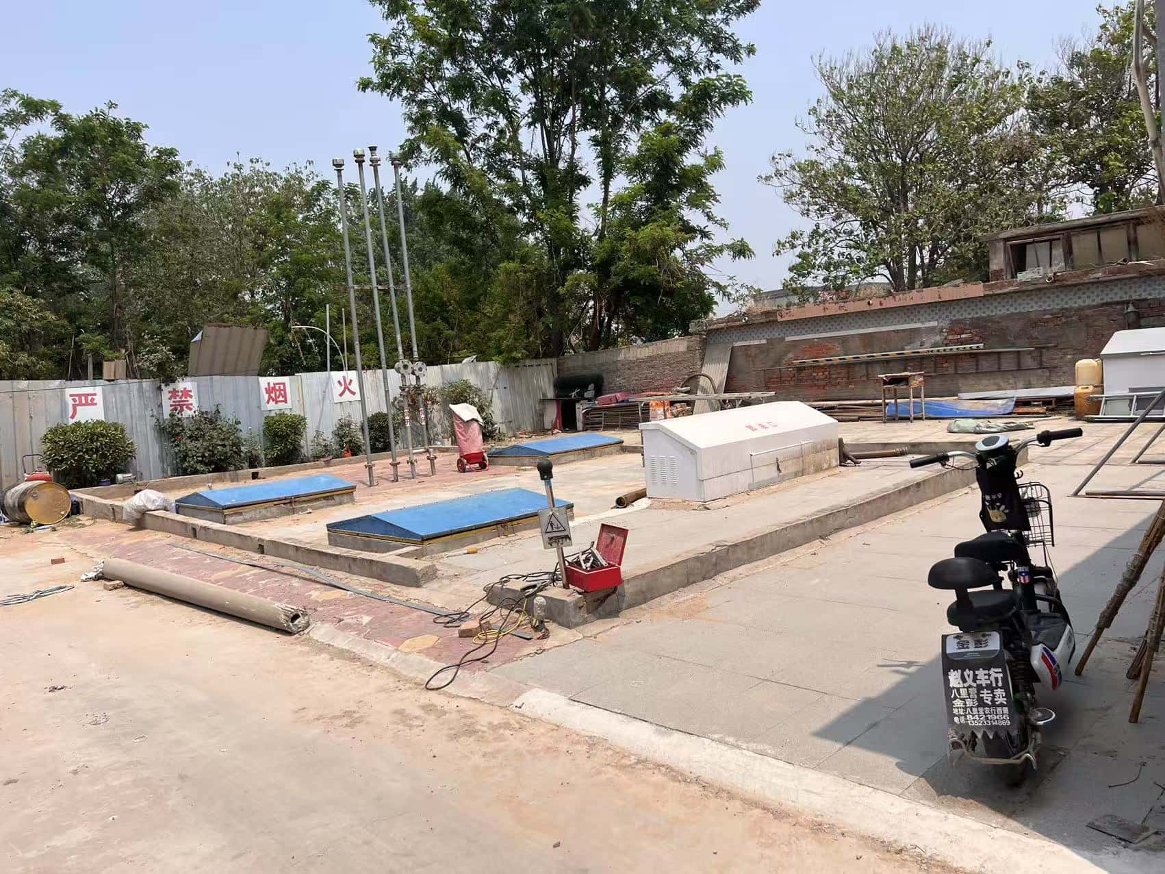 项目简介 | 滑县兴达加油站,成立于2012年5月15日,地址位于滑县八里营乡政府西200米路北,主要负责人:朱佩礼,类型:个人独资企业,统一社会信用代码:91410526MA404Y9M61。《成品油零售经营批准证书》,经营范围为:汽油、煤油、柴油;有效期:2022年2月21日至2027年2月21日。《危险化学品经营许可证》许可经营范围:乙醇汽油、柴油,有效期:2022年11月28日-2025年11月27日。 该站坐北朝南,站外东侧为民房,西侧为门面房和民房,南侧为S222,北侧为空地;自2022年11月取证以来,该站周边环境未发生变化;站内总平面布置变化为:于2025年4月在汽油加油机附近设置可燃气体报警探头2个,站区西侧的原发电机间拆除,在站区西北侧设置卫生间和仓库,原辅助用房设置为人工洗车。 该站主要设备包括双枪加油机4台;油罐区有乙醇汽油罐2台,柴油罐2台,罐容量均为30m3,总容积为90m3(柴油折半计入)。根据GB 50156-2021《汽车加油加气加氢站技术标准》第3.0.9条加油站的等级划分,该站为三级加油站。该加油站汽油设备设置有油气回收系统。 依据GB18218-2018《危险化学品重大危险源辨识》对该站乙醇汽油、柴油的存在量进行辨识,该加油站储存单元(油罐区)乙醇汽油、柴油存在量未构成危险化学品重大危险源。 | |||