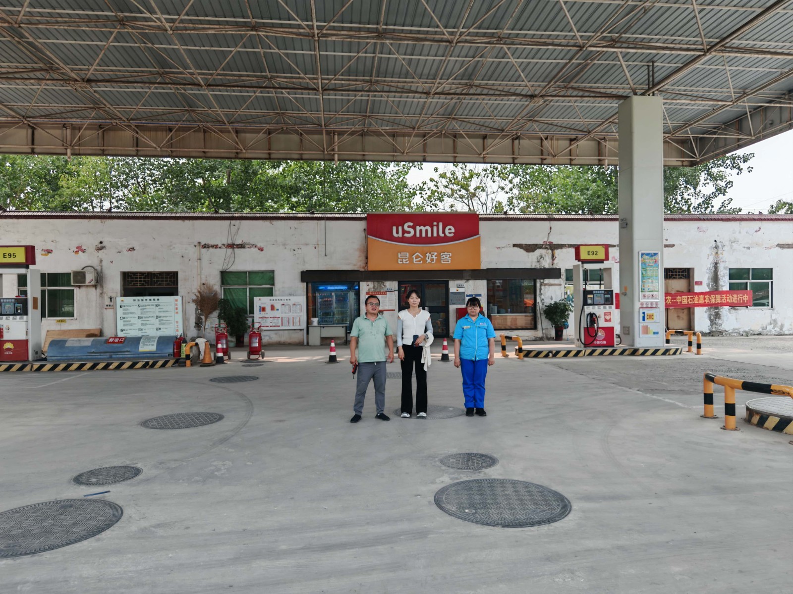 项目简介 | 中国石油天然气股份有限公司河南柘城第七加油站位于柘城县邵元乡吴村。该加油站自上次取得危险化学品经营许可证三年以来,未发生过安全生产事故,站内设备设施及周边环境未发生变化。 该加油站占地面积约4427.04m2,现有员工2人,其中安全生产管理人员1人,无特种作业人员;《危险化学品经营许可证》(证书编号:豫N危化经字[2024]00734),有效期限为2022年11月21日至2025年11月20日,许可范围:乙醇汽油、柴油。 该加油站有地埋式储油罐4座(双层罐),其中汽油罐2座(2×30m³)、柴油罐2座(2×30m³);设有加油机4台。根据GB50156-2021《汽车加油加气加氢站技术标准》中加油站分级的规定,折合计算油罐总容积为90m3(柴油折半计入),属于三级加油站。 | |||