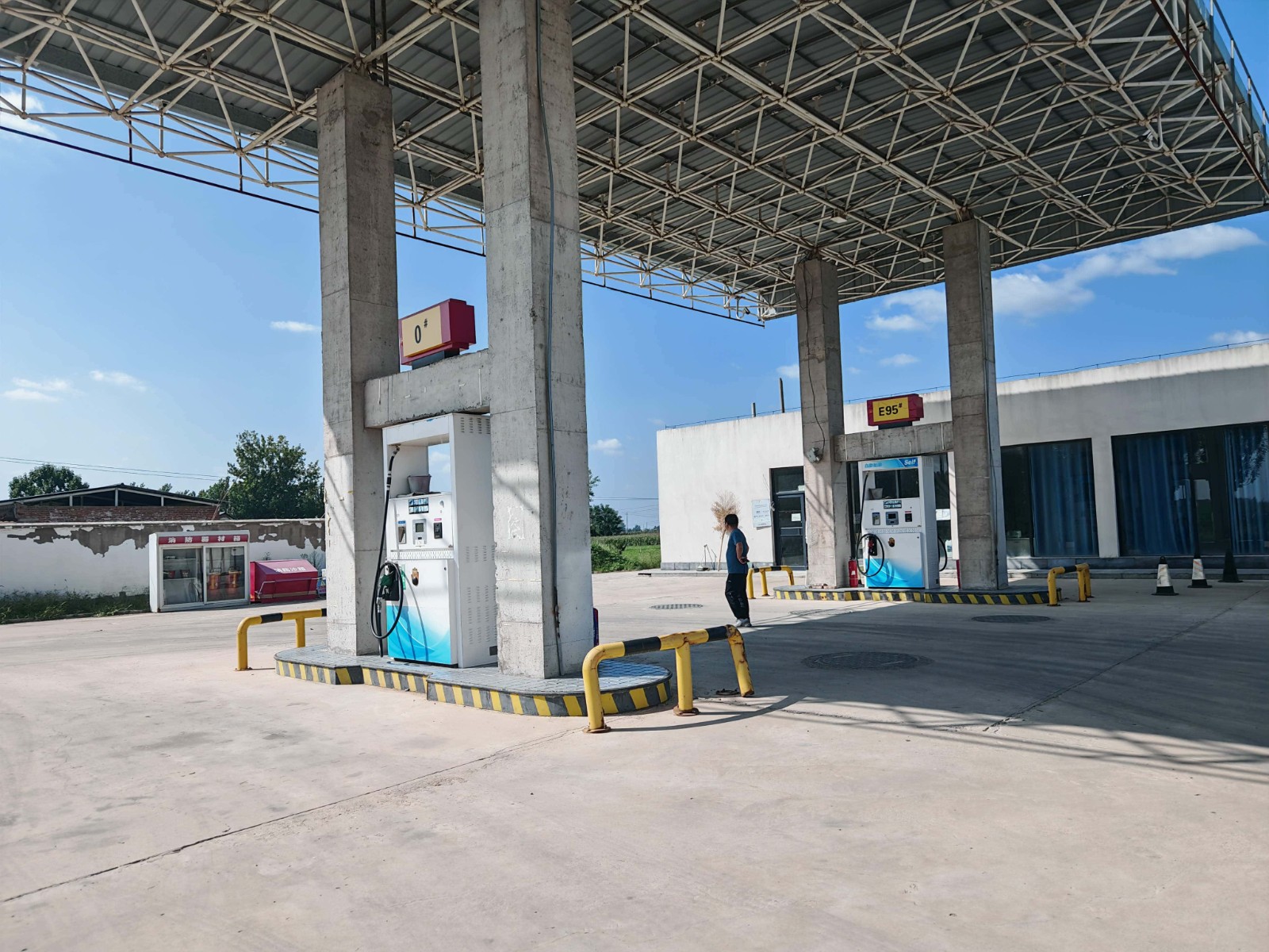 项目简介 | 中油(民权)石油天然气股份有限公司王桥镇加油站位于河南省商丘市民权县X003公路王桥镇杨官庄村东路北,该加油站占地面积约1712.50m2,现有员工2人,其中安全生产管理人员1人,无特种作业人员;《危险化学品经营许可证》(证书编号:豫N危化经字[2024]9047),有效期限为2022年11月21日至2025年11月20日,许可范围:乙醇汽油、柴油。 该加油站有地埋式储油罐3座(双层罐),其中汽油罐2座(2×30m³)、柴油罐1座(1×30m³),设有加油机2台。根据GB50156-2021《汽车加油加气加氢站技术标准》中加油站分级的规定,折合计算油罐总容积为75m3(柴油折半计入),属于三级加油站。 | |||