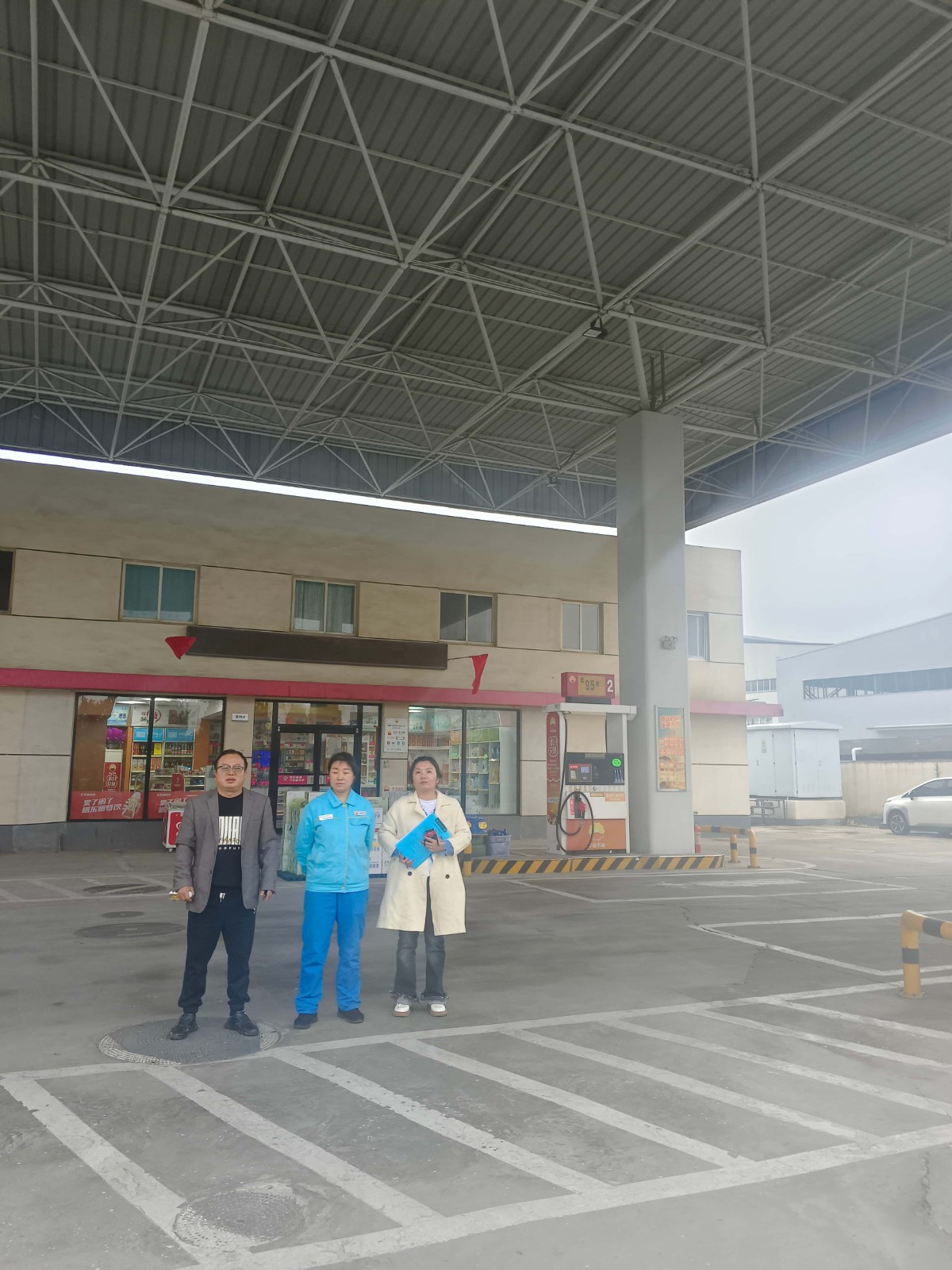 项目简介 | 中国石油天然气股份有限公司河南孟津第七加油站位于河南省洛阳市孟津区麻屯镇刘楼村机场路与衡山路交叉口东1公里路北97号。该加油站占地面积1649.8m2,现有员工4人,其中安全生产管理人员1人;河南洛阳销售分公司配备特种作业人员(低压电工作业人员)2人;《危险化学品经营许可证》(证书编号:豫C危化经字[2025]00121号),有效期限至2026年01月16日,许可范围:乙醇汽油、柴油。 该加油站站房设在站区北部,站房东侧设置1台箱式变压器,站房西侧新增1台箱式变压器、1台240KW分体式直流充电机含4台充电终端;罩棚布置在站房南侧,在罩棚下设4台双枪加油机,分两排平行布置,安装在加油岛上;罐区有4座双层FF卧式油罐,埋地设在罩棚行车道下,其中30m3汽油罐2座、30m3柴油罐2座;密闭卸油口设置在罩棚西侧;罩棚南侧设1座洗车机。根据GB50156-2021《汽车加油加气加氢站技术标准》表3.0.9加油站的等级划分,该站油罐总容积为30×2+30×2×1/2 =90m3(柴油折半计入),属于三级加油站。该站采用自吸式加油工艺,设有加油、卸油油气回收系统。 加油站东侧为民房(按三类保护物计);南侧为机场路;西侧为民房(按三类保护物计);北侧为扣件租赁仓库(按戊类仓库计)。站内汽油、柴油工艺设备与站外建构筑物的安全间距均符合GB50156-2021的要求。该加油站站内设施的防火间距满足要求。 | |||