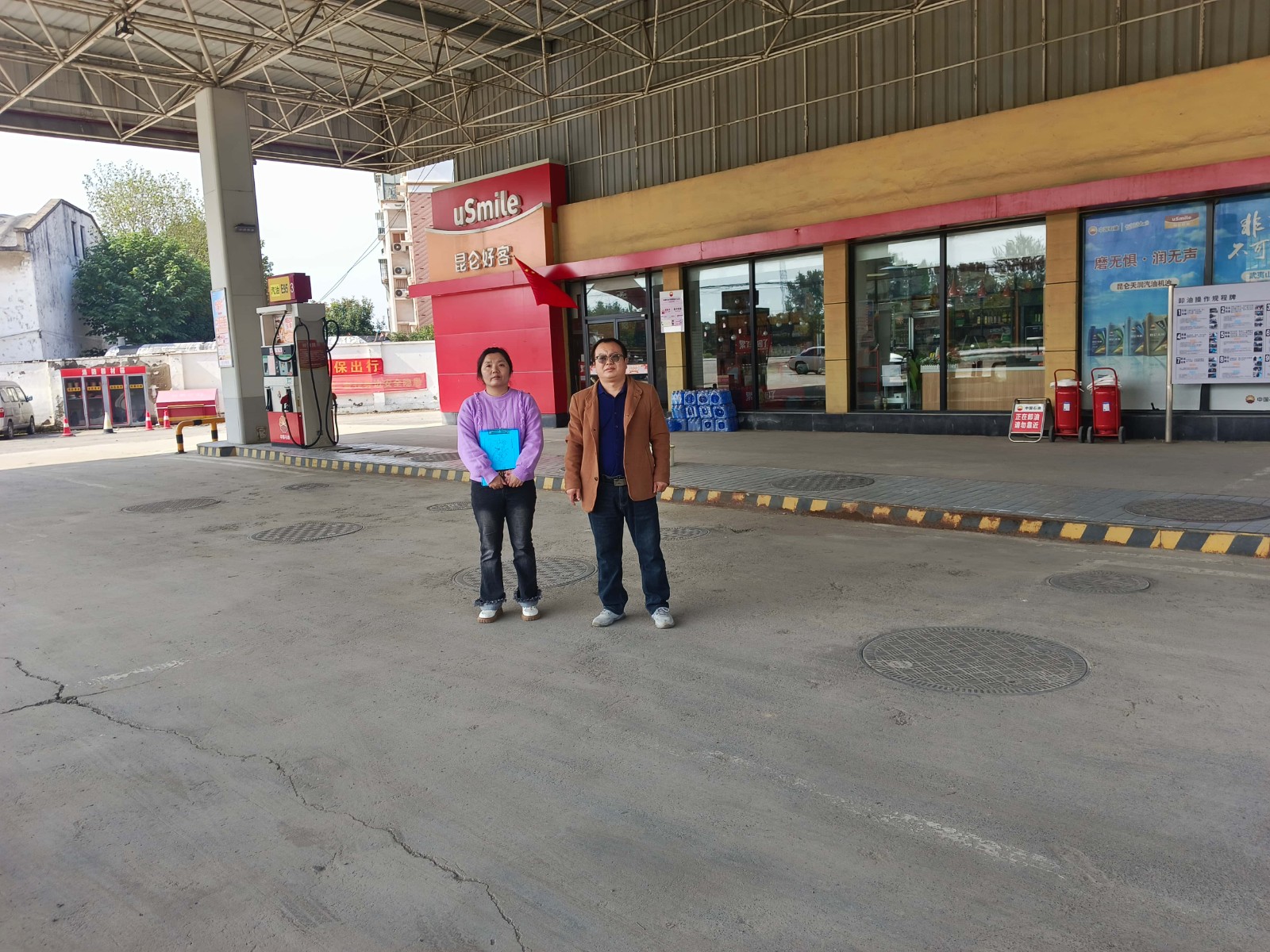 项目简介 | 中国石油天然气股份有限公司河南开封第六加油站位于开封市祥符区王解庄北头。《危险化学品经营许可证》(证书编号:豫B危化经字[2023]00084号),有效期限至2026年1月27日,许可范围:乙醇汽油、柴油。 该加油站占地面积5314.39m2,现有员工4人,其中安全生产管理人员1人。站房设在站区中部,罩棚布置在站房南侧,在罩棚下设4台四枪加油机(每台加油机均拆除2个加油枪),分两排平行布置,安装在加油岛上;罐区有4座双层FF卧式油罐,埋地设在罩棚行车道下,其中30m3汽油罐2座、30m3柴油罐2座;密闭卸油口设在靠近站房侧加油岛上。根据GB50156-2021《汽车加油加气加氢站技术标准》表3.0.9加油站的等级划分,该站油罐总容积为30×2+30×2×1/2 =90m3(柴油折半计入),属于三级加油站。 该加油站采用潜泵式加油工艺,设有汽油加油和卸油油气回收系统。 该加油站东侧为文化路、架空电力线(有绝缘层),西侧为居民区水罐、民房(三类保护物)、废弃冷库(丙类库房)、架空通信线,南侧为连天公路(G310国道)、架空电力线(有绝缘层)、架空通信线,北侧为民房(三类保护物)。站内汽油、柴油工艺设备与站外建构筑物的安全间距均符合GB50156-2021的要求。该加油站站内设施的防火间距满足要求。 | |||