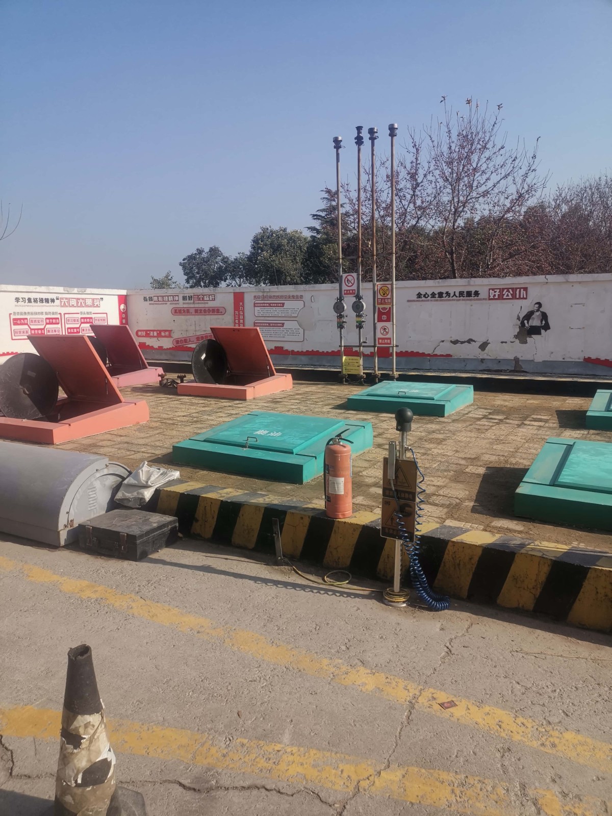 项目简介 | 中国石油天然气股份有限公司河南开封第二十二加油站位于兰考县三义寨乡310国道路北。《危险化学品经营许可证》(证书编号:豫B危化经字[2023]00454号),有效期限至2026年3月20日,许可范围:乙醇汽油、柴油。 该加油站占地面积3490.00m2,现有员工5人,其中安全生产管理人员1人。站房设在站区北部,罩棚布置在站房南侧,在罩棚下设6台双枪加油机(其中2台加油机各停用1个加油枪),分两排平行布置,安装在加油岛上;罐区布置在站房东侧,有4座双层SF卧式油罐,埋地设在非行车道下,其中30m3汽油罐2座、30m3柴油罐2座;通气管口设在罐区东侧,密闭卸油口设在罐区西侧。根据GB50156-2021《汽车加油加气加氢站技术标准》表3.0.9加油站的等级划分,该站油罐总容积为30×2+30×2×1/2 =90m3(柴油折半计入),属于三级加油站。 该加油站采用潜泵式加油工艺,设有汽油加油和卸油油气回收系统。 该站东侧为树林,西侧为乡间小路、架空电力线(有绝缘层),南侧为G220国道,北侧为农田。站内汽油、柴油工艺设备与站外建构筑物的安全间距均符合GB50156-2021的要求。该加油站站内设施的防火间距满足要求。 | |||