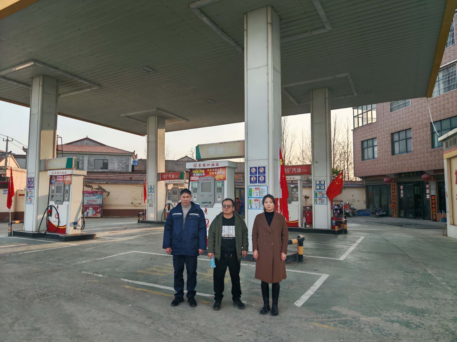 项目简介 | 鹿邑县东秦楼加油站位于鹿邑县杨湖口镇秦楼东侧鹿柘公路南侧。该加油站自上次取得危险化学品经营许可证三年以来,未发生过安全生产事故;站内设备设施及周边环境未发生变化。 该加油站占地面积约900.00m2,现有员工3人,其中安全生产管理人员1人,无特种作业人员。原《危险化学品经营许可证》(证书编号:豫鹿危化经字[2023]000041号),有效期限为2023年03月02日至2026年03月01日,许可范围:车用乙醇汽油、柴油。 该加油站有地埋式储油罐3座(双层罐),其中汽油罐1座(1×30m³)、柴油罐1座(1×30m³)、隔仓罐1座(1×15m³汽油+1×15m³柴油);设有加油机4台。根据GB50156-2021《汽车加油加气加氢站技术标准》中加油站分级的规定,折合计算油罐总容积为67.5m3(柴油折半计入),属于三级加油站。 | |||