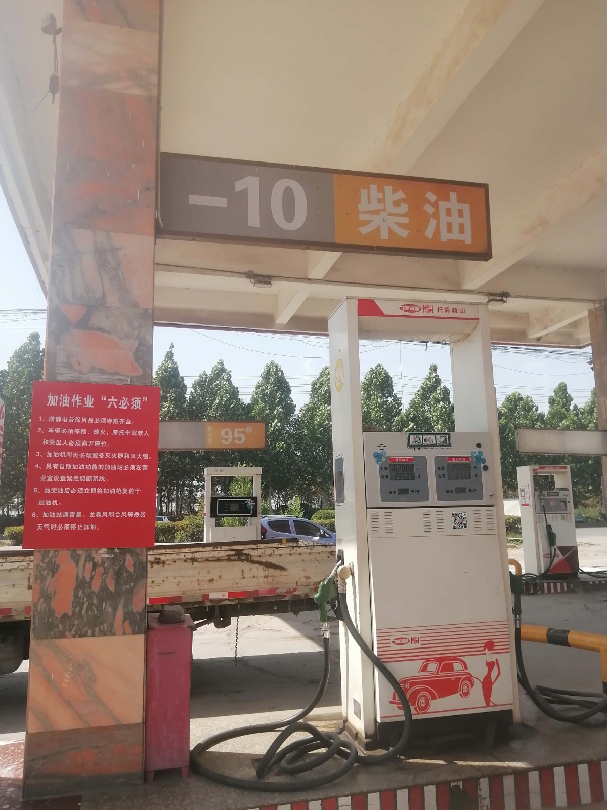 项目简介 | 该加油站位于濮阳市王助乡施屯村106国道北侧,该站人员为6人,主要负责人孙德凯,安全管理人员苏权威,主要负责人和安全管理人员均经应急管理部门安全培训后考试合格,持有考核合格证书。加油站用地面积为4988.96m2,站房建筑面积75.6m2,一座混凝土结构罩棚投影面积271.2m2。 该站坐北朝南,加油作业区有自吸式加油机4台(其中1台双枪柴油加油机、1台单枪柴油加油机、1台双枪92#汽油加油机、1台单枪95#汽油加油机);油罐区位于站房东北侧,设有SF双层乙醇汽油罐2台,单罐容积为20m³,SF双层柴油罐2台,单罐容积为20m³。站内车辆入口和出口分开设置。该站油品折合总容积为: V汽+1/2V柴=20×2+1/2×20×2=60m3根据GB50156-2021《汽车加油加气加氢站技术标准》第3.0.9条对该站的等级划分,该站属于三级加油站,该站站内乙醇汽油设备设有油气回收系统,油罐设置有液位监控仪、双层SF油罐渗漏监测仪、紧急切断装置,液位报警仪和测漏检测系统均设置有不间断电源;卸油作业区内设置有静电释放装置,乙醇汽油罐和柴油罐通气管分开设置,通气管均设置有阻火器,视频监控、应急灯等安全设施齐全有效投用。 | |||