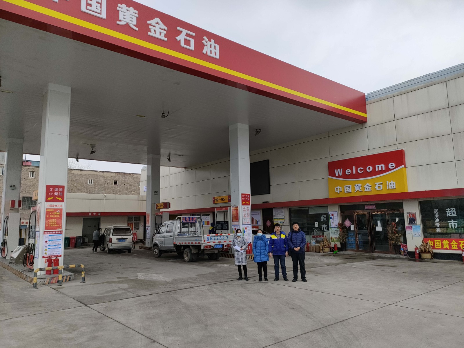 项目简介 | 河南黄金物资有限公司郑州成品油经销部位于郑州市管城区南曹乡席村。该加油站自上次取得危险化学品经营许可证三年来,未发生过重大安全事故;于2020年12月名称由“河南黄金物资公司成品油经销部”变更为“河南黄金物资有限公司郑州成品油经销部”;法定代表人由“张海科”变更为“孟红军”;加油站内、外其它设施未发生变化。该加油站安全生产规章制度、安全生产责任制已按《河南省安全生产条例》等要求进行了修订。该加油站根据国家应急管理部和河南省应急管理厅有关安全风险隐患排查治理双重预防体系的要求,通过对加油站周边环境、平面布置、储罐区、卸油作业区、加油作业区、配电室、办公区等处划分风险点、辨识危险源、对风险进行分级评价及制定相应的管控措施,积极开展安全风险分级管控和隐患排查治理工作。 该加油站占地面积约1342m2,主要负责人为孟红军,现有员工11人,其中安全生产管理人员1人,无特种作业人员;取得有《危险化学品经营许可证》(证书编号:豫郑危化经字[2018]00694),有效期至2021年6月7日,许可范围:乙醇汽油、柴油[闭杯闪点≤60℃]。 该加油站有地埋式储油罐4座,其中汽油罐2座(30m3×2),柴油罐2座(30m3×2);设置四枪加油机4台。根据GB50156-2012《汽车加油加气站设计与施工规范》(2014年版)中加油站分级的规定,折合计算油罐总容积为90m3,属于三级加油站。加油站北侧为Y010乡道和架空通信线;西侧为黄金物资公司停车棚(三类保护物);南侧为糖库(丙类);东侧为乡村小路和民房(三类保护物)。 | |||