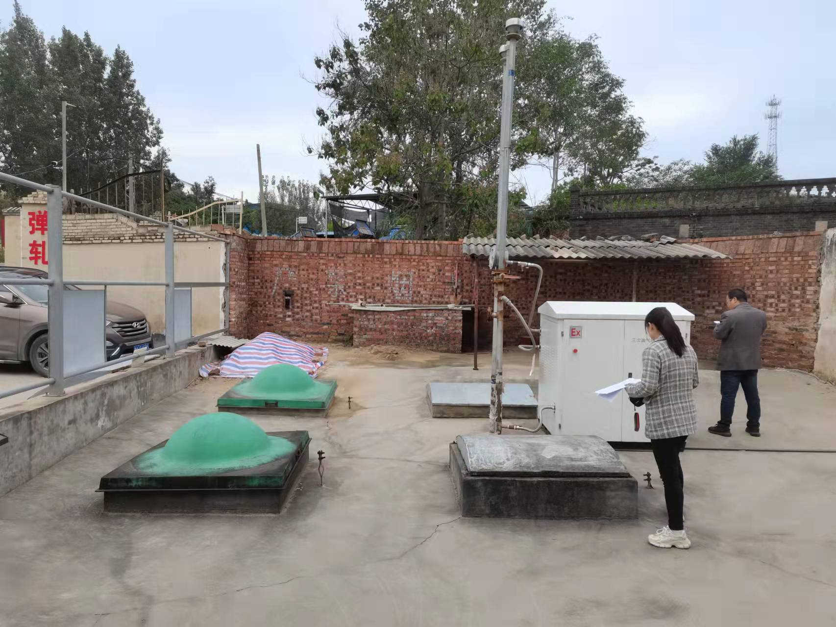 项目简介 | 孟州市赵和农机加油站位于孟州市赵和镇西赵和村。该加油站自上次取得危险化学品经营许可证三年以来,未发生过重大安全事故。该加油站占地面积约570m2,现有员工6人,其中安全生产管理人员1人,无特种作业人员。 该加油站有地埋式储油罐2座,其中汽油罐1座(30m3×1)、柴油罐1座(30m3×1);有加油机3台。根据GB50156-2021《汽车加油加气加氢站技术标准》中加油站分级的规定,折合计算油罐总容积为45m3,属于三级加油站。该加油站东侧东侧为孟州市赵和镇电管站(三类保护物)和架空电力线,西侧(西南)为修理厂(散发火花地点)、废弃仓库和弹棉花场(丙类),北侧为民房(三类保护物),南侧为架空通信线和X045县道公路。站内设备与站外建(构)筑物的安全间距符合要求。 | |||