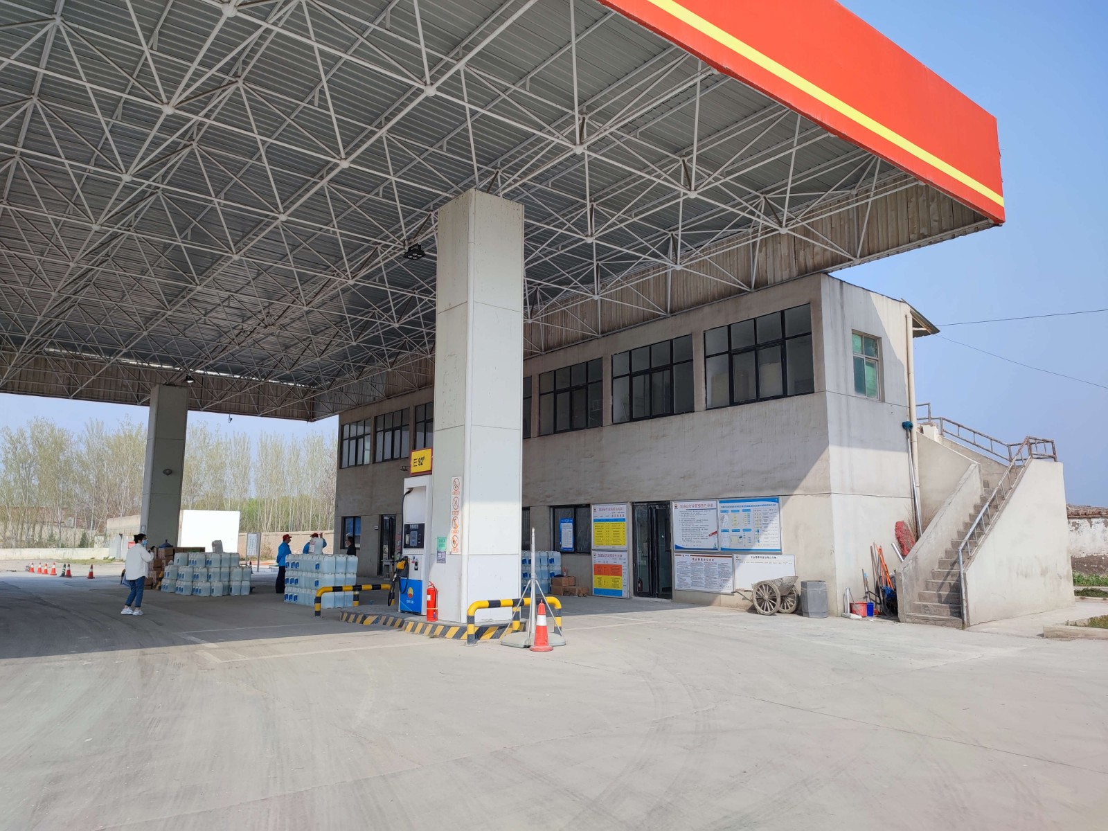 项目简介 | 中国石油天然气股份有限公司河南新郑第九加油站,位于新郑市观音寺镇菜王村S103省道路东,占地面积7820.54m2。该站面向西侧,东侧为空地,西侧为S103省道,南侧为电力线,北侧为树林。内外部间距均符合GB50156-2021《汽车加油加气加氢站技术标准》第4.0.4条的安全间距要求。 该站有员工4人,危险化学品经营许可证许可经营范围:汽油、柴油[闭环闪点≤60℃]。该站有3台自吸式双枪加油机,油罐区有4座SF双层油罐,其中2座30m3汽油罐和2座30m3柴油罐,总容积为90m3(柴油折半计入)。根据GB50156-2021《汽车加油加气加氢站技术标准》第3.0.9条对加油站的等级划分,该加油站为三级加油站。该加油站有汽油加油和卸油油气回收系统。 自上次取得危险化学品经营许可证三年来,加油站北侧原有厕所变为废弃房,站房南侧靠近楼梯的西侧厕所变为杂物间,厕所移到东侧,三年来加油站未发生过安全生产事故。加油站油罐区四个油罐均进行了双层罐改造,并且出具了《中国石油天然气股份有限公司河南新郑第九加油站双层罐防渗改造工程竣工报告》和《中国石油天然气股份有限公司河南新郑第九加油站安全设施设计报告》。 | |||