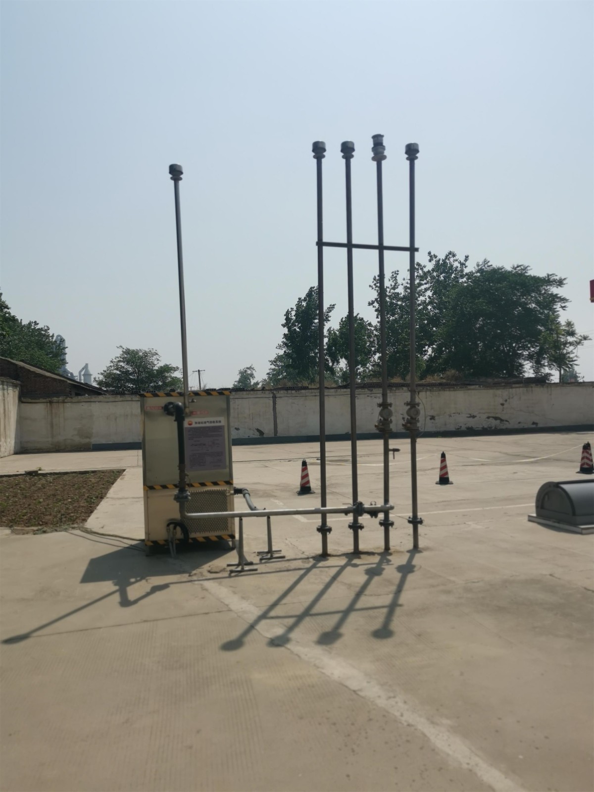 项目简介 | 中国石油天然气股份有限公司河南博爱第九加油站,位于博爱县柏山镇水运村东(市人民路南新月铁路下行线北侧水运村东),占地面积4936.62m2。该站坐北朝南,东侧为民房,西侧为小路,南侧为人民路,北侧为民房。外部间距均符合GB50156-2021《汽车加油加气加氢站技术标准》第4.0.4条的安全间距要求。 该站有员工3人,危险化学品经营许可证许可经营范围:汽油、柴油[闭杯闪点≤60℃]。该站有1台潜泵式双枪柴油加油机,3台潜泵式双枪汽油加油机;油罐区有4座FF双层油罐,其中2座30m3汽油罐和2座30m3柴油罐,总容积为90m3(柴油折半计入)。根据GB50156-2021《汽车加油加气加氢站技术标准》第3.0.9条对加油站的等级划分,该加油站为三级加油站。该加油站有汽油加油和卸油油气回收系统。 | |||