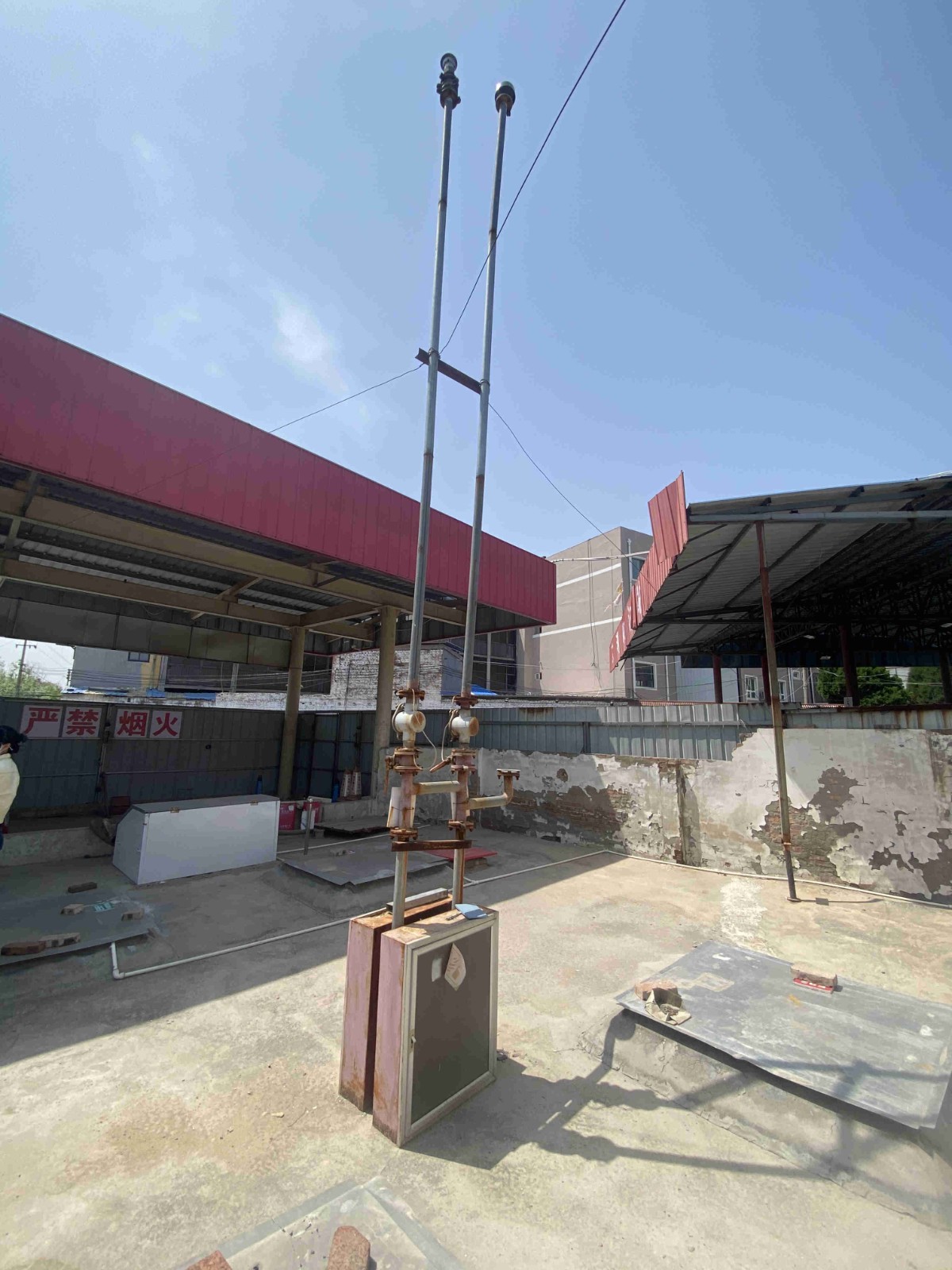 项目简介 | 长垣市文明路加油站位于河南省新乡市长垣市蒲西办事处卫华大道中段路北(桂陵大道东十六巷)2号。该加油站占地面积约675m2,现有员工8人,其中安全生产管理人员1人,无特种作业人员;《危险化学品经营许可证》(证书编号:豫长危化经字[2021]019号),有效期至2024年07月25日,许可范围:车用乙醇汽油、柴油[闭杯闪点≤60℃]。 该加油站设有地埋式双层汽油储罐2座(30m3×2),设有加油机3台。根据GB50156-2021《汽车加油加气加氢站技术标准》中加油站分级的规定,折合计算油罐总容积为60m3,属于三级加油站。 | |||