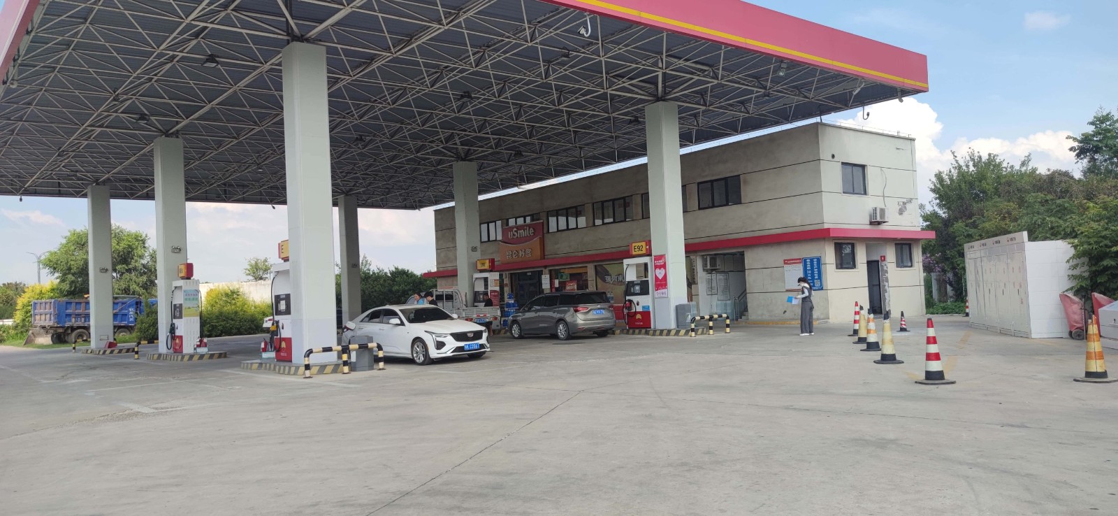 项目简介 | 中国石油天然气股份有限公司河南鄢陵第十二加油站 位于鄢陵县金瑞大道与花博大道交叉口东南角,《危险化学品经营许可证》(豫K危化经字【2022】000190号)有效期限至2025年09月04日,许可范围:乙醇汽油、柴油(闭杯闪点≤60℃)。 加油站占地面积为2631m2,有员工3人,其中安全生产管理人员1人,无特种作业人员。加油站设有4台加油机,有地埋式储油罐4座(FF双层油罐),其中2座30m3乙醇汽油罐、2座30m3柴油罐(柴油折半计入),总容积为90m3。根据GB50156-2021《汽车加油加气加氢站技术标准》第3.0.9条对加油站的等级划分,该加油站为二级加油站。该加油站加油采用自吸式加油工艺,汽油设备设置有加油和卸油油气回收系统。 | |||