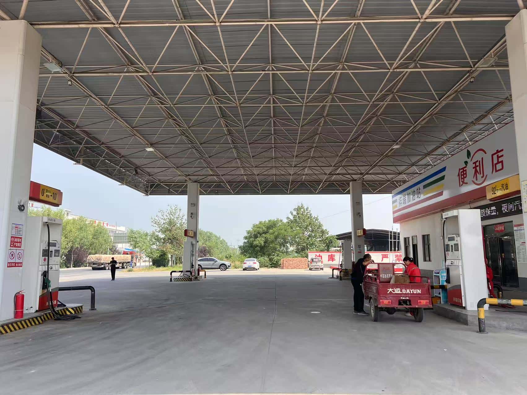 项目简介 | 滑县慈周寨祥瑞加油站,成立于2012年7月13日,地址位于河南省滑县省道213慈周寨段镇政府北400米路东,主要负责人:陈飞羽,类型:个人独资企业,统一社会信用代码:91410526050830363。《成品油零售经营批准证书》,经营范围为:汽油、煤油、柴油。《危险化学品经营许可证》许可经营范围:乙醇汽油、柴油,有效期:2022年11月28日-2025年11月27日。 该站坐东朝西,该站站外东侧为农田,南侧为空地,西侧为S213, 北侧为牲畜收购。自2022年11月取证以来,周边环境未发生变化,站内总平面布置为:于2024年12月份设置了可燃气体报警探头3个,其余设备设施未发生变化。该站主要设备包括双枪加油机4台;油罐区有乙醇汽油罐2台,柴油罐2台,罐容量均为30m3,总容积为90m3(柴油折半计入)。根据GB 50156-2021《汽车加油加气加氢站技术标准》第3.0.9条加油站的等级划分,该站为三级加油站。该加油站汽油设备设置有油气回收系统。 依据GB18218-2018《危险化学品重大危险源辨识》对该站乙醇汽油、柴油的存在量进行辨识,该加油站储存单元(油罐区)乙醇汽油、柴油存在量未构成危险化学品重大危险源。 | |||