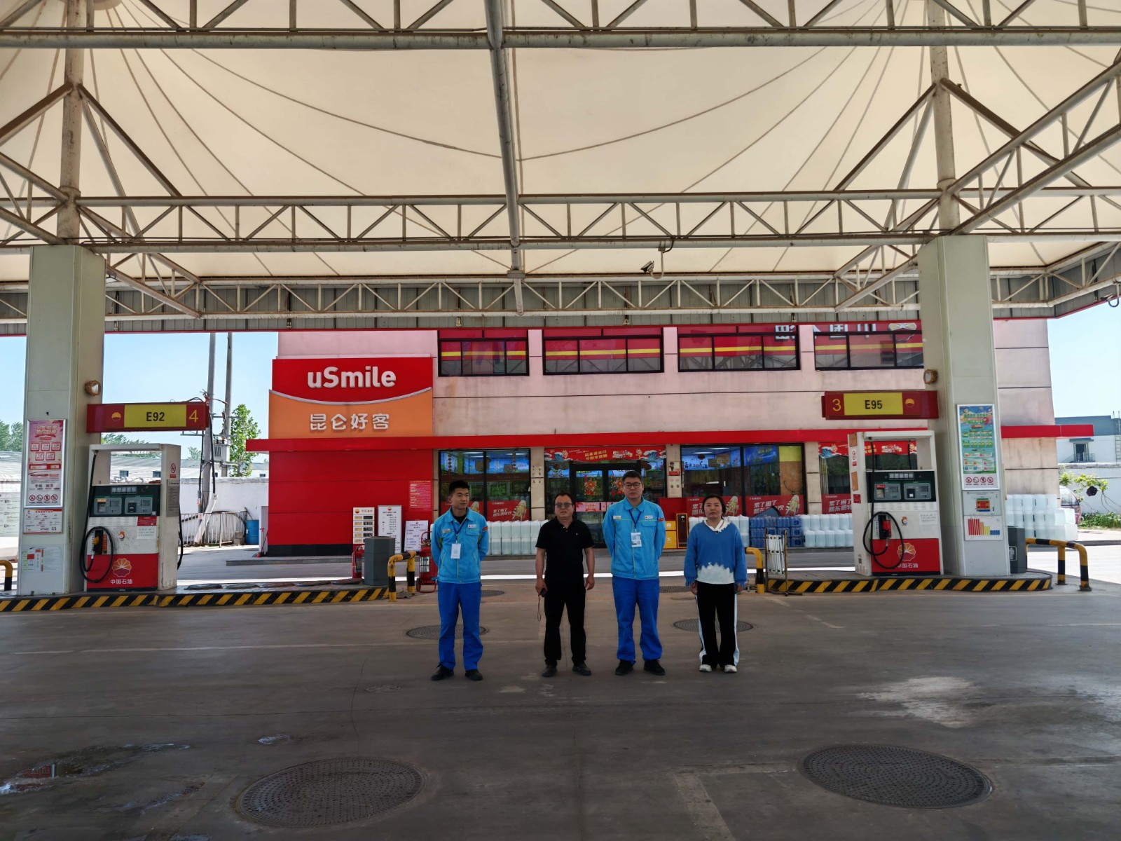 项目简介 | 中国石油天然气股份有限公司河南宁陵第九十八加油站位于宁陵县高速下路口路东。该加油站自上次取得危险化学品经营许可证三年以来,未发生过安全生产事故;2024年8月,利用站内南侧空地新增一座洗车机;2024年10月,利用站内站房闲置屋顶新增光伏发电设施;站内其他设备设施及周边环境未发生变化。 该加油站占地面积约3591m2,现有员工5人,其中安全生产管理人员1人,无特种作业人员;《危险化学品经营许可证》(证书编号:豫N危化经字[2024]Y009),有效期至2025年8月28日,许可范围:乙醇汽油、柴油。 该加油站有地埋式储油罐4座(双层罐),其中汽油罐2座(2×30m³)、柴油罐2座(2×30m³);设有加油机4台。根据GB50156-2021《汽车加油加气加氢站技术标准》中加油站分级的规定,折合计算油罐总容积为90m3(柴油折半计入),属于三级加油站。 | |||