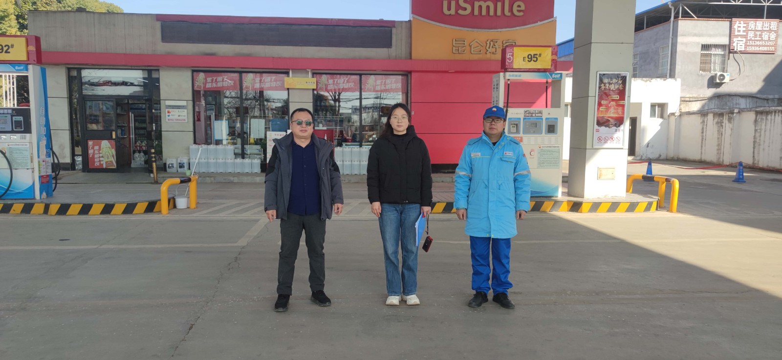 项目简介 | 中国石油天然气股份有限公司河南南阳第三十八加油站位于邓州市新华西路与西环路交叉口,《危险化学品经营许可证》((豫R)危化经字[2024]01096),有效期限至2026年3月4日,许可范围:乙醇汽油、柴油。 加油站占地面积为2115m2,有员工2人,其中安全生产管理人员1人,无特种作业人员。加油站设有4台加油机,有卧式埋地储油罐4座(SF双层油罐),2座30m3乙醇汽油罐、2座30m3柴油罐(柴油折半计入),总容积为90m3。根据GB50156-2021《汽车加油加气加氢站技术标准》第3.0.9条对加油站的等级划分,该加油站为三级加油站。该加油站加油采用自吸式加油工艺,汽油设备设置有加油和卸油油气回收系统。 | |||