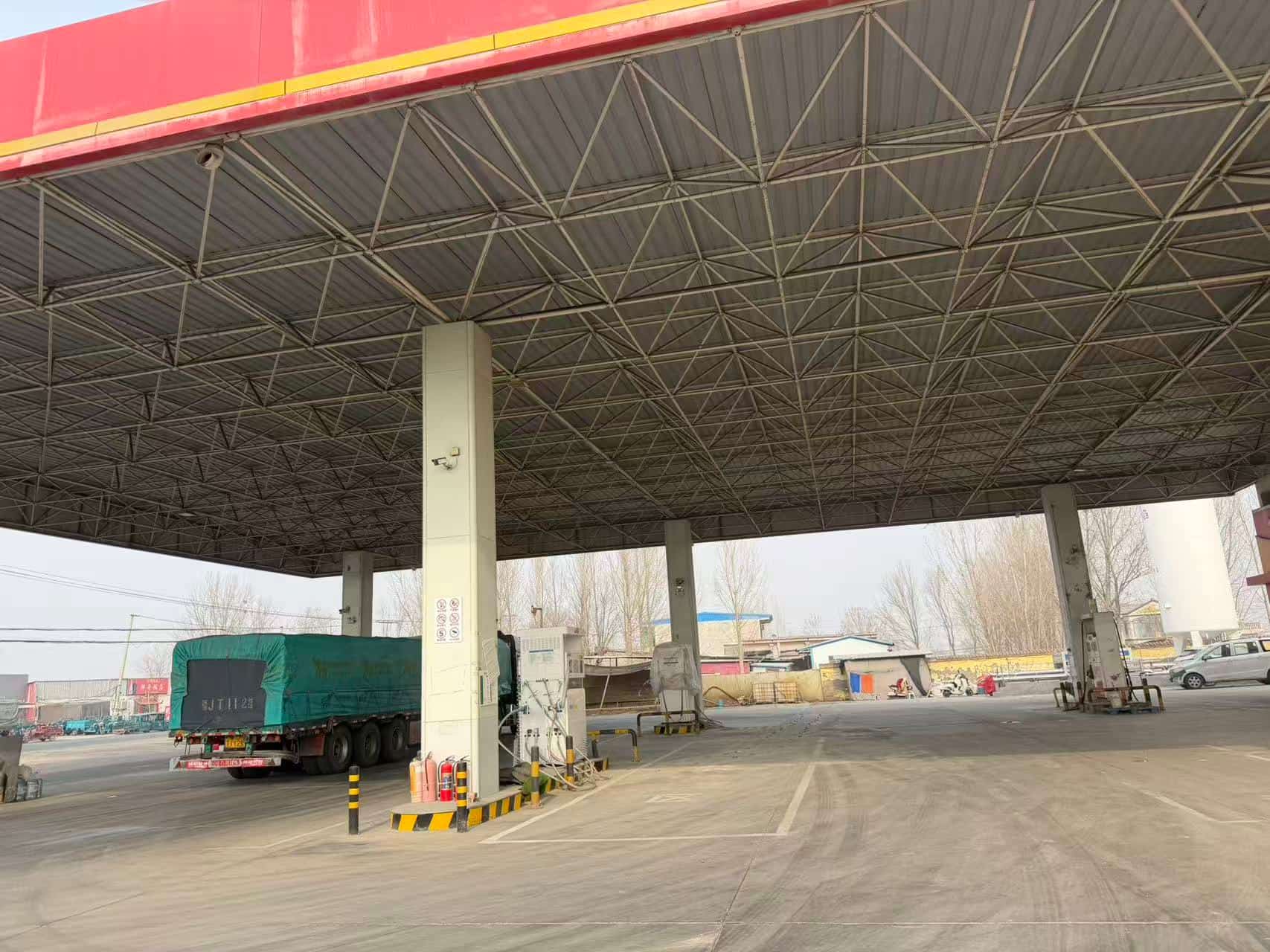 项目简介 | 河南佳能油气有限公司内黄第五油气站位于河南省安阳市内黄县马上乡S213吉村段东侧16号,期间因经营主体发生变化,曾更名为:内黄县瑞城加油站;现因启用LNG加气部分,更名为:河南佳能油气有限公司内黄第五油气站,该站始建于2021年,为二级加油与LNG合建站,占地面积约3070.6m2,类型:有限责任公司分公司(非自然人投资或控股的法人独资),统一社会信用代码:91410527MADATXU419。该站原《成品油零售经营批准证书》(油零售证书第41050496号),经营范围为:汽油、煤油、柴油。有效期:2022年03月30日至2026年05月08日。原《危险化学品经营许可证》(豫E滑危化经字[2024]00052号),许可范围:乙醇汽油、柴油。有效期:2024年5月9日至2027年5月8日。 该站坐东朝西,站外东侧为空地,西侧为S213省道,南侧为内黄县吉祥加油站,北侧为民房。该站三年来周边环境未发生变化。加油部分主要设备包括自吸式双枪加油机4台,有S/F双层乙醇汽油罐2台,S/F双层柴油罐2台,罐容量均为30m3,油罐折合总容积:(30×2)+(30×2)×1/2=90m3(柴油折半计入);LNG加气部分于2025年年底启用,原中间1台柴油加油机拆除,启用LNG加气机2台,60m3LNG储罐1座,根据GB 50156-2021《汽车加油加气加氢站技术标准》第3.0.16条对加油站的等级划分,该站属于二级加油与LNG加气合建站,该站汽油设备设置有油气回收系统。 | |||